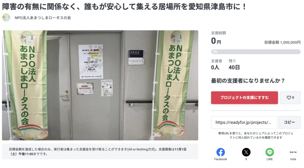 誰もが安心して集える居場所づくりに、ご賛同ください!
