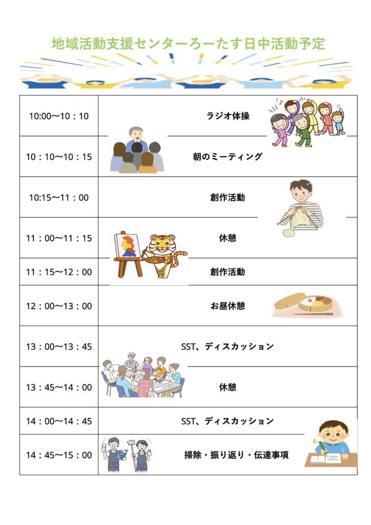 創作活動、SST、交流仲間づくりの部屋です。